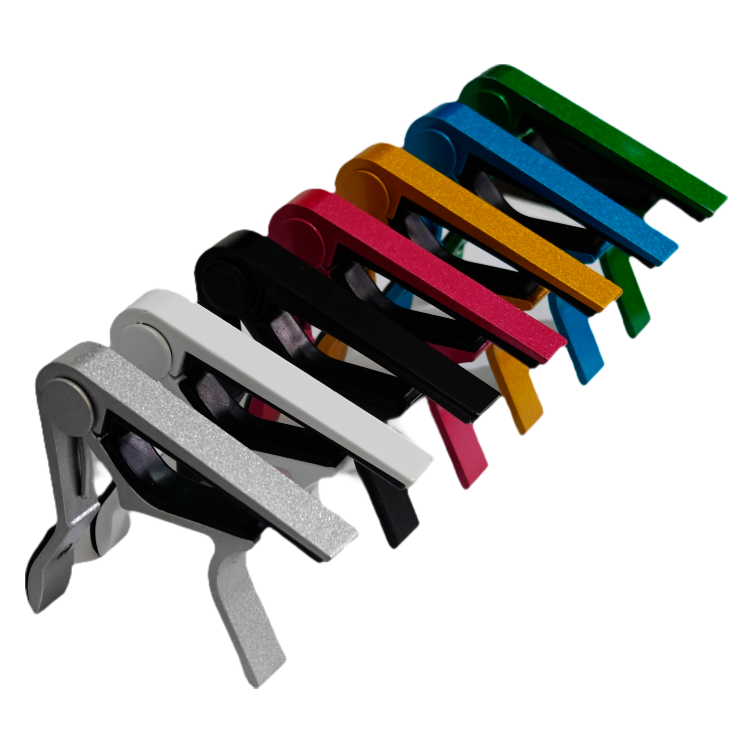 Nuestro capo está fabricado con aluminio de alta calidad, lo que lo hace duradero y resistente al desgaste. Además, está disponible en una variedad de colores, para que puedas elegir el que mejor combine con tu guitarra.