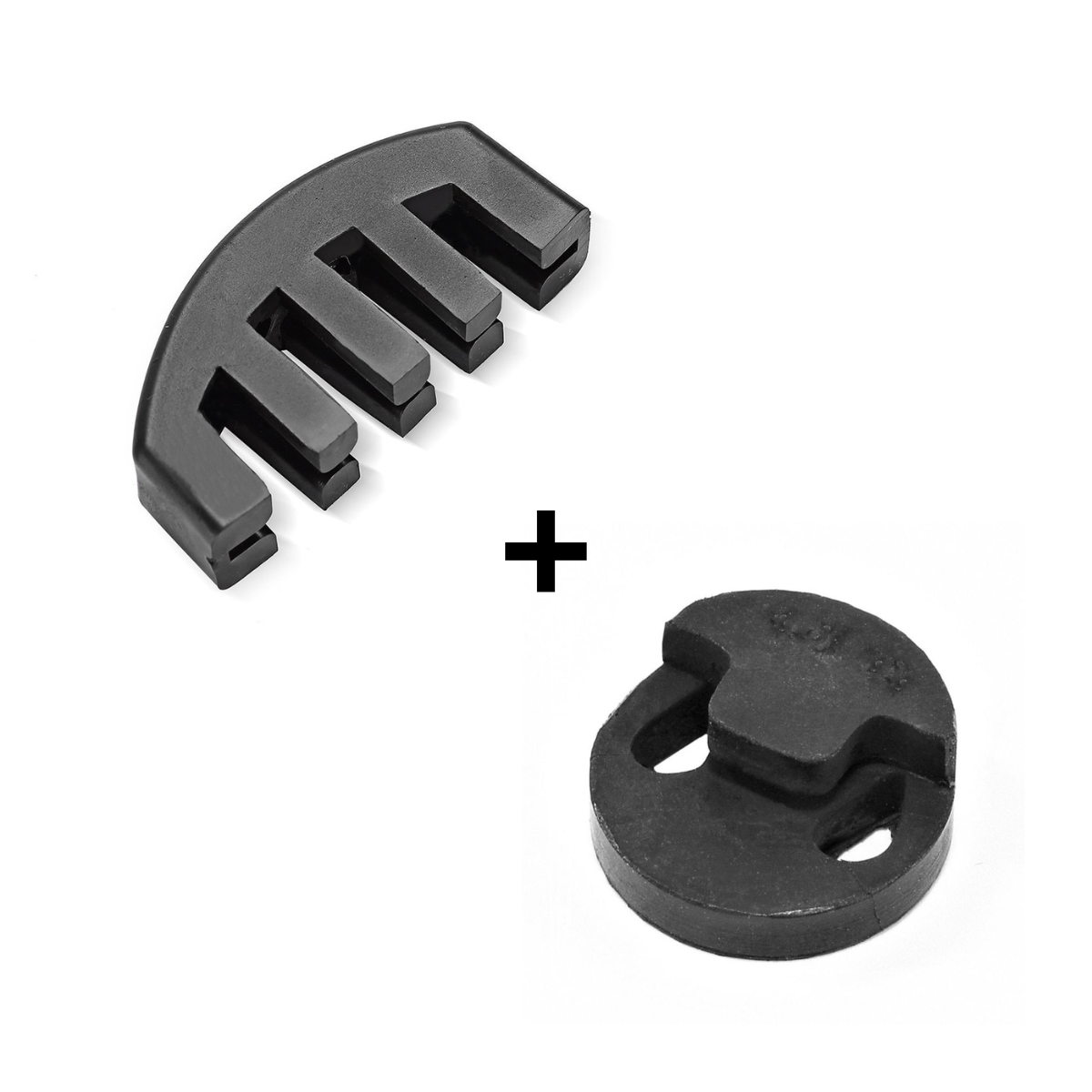 Combo sordina de estudio y sordina de concierto para violín. Este combo de sordinas de goma son el dúo perfecto para todo violinista. Mientras la Sordina de concierto ofrece una reducción de volumen que permite crear un efecto sonoro en el violín, la Sordina de estudio permite un estudio intensivo sin alterar el tono natural del instrumento ni incomodar a los vecinos. Fabricadas en material de goma, son herramientas esenciales para desarrollar técnica en silencio y explorar texturas sonoras únicas en la interpretación orquestal.